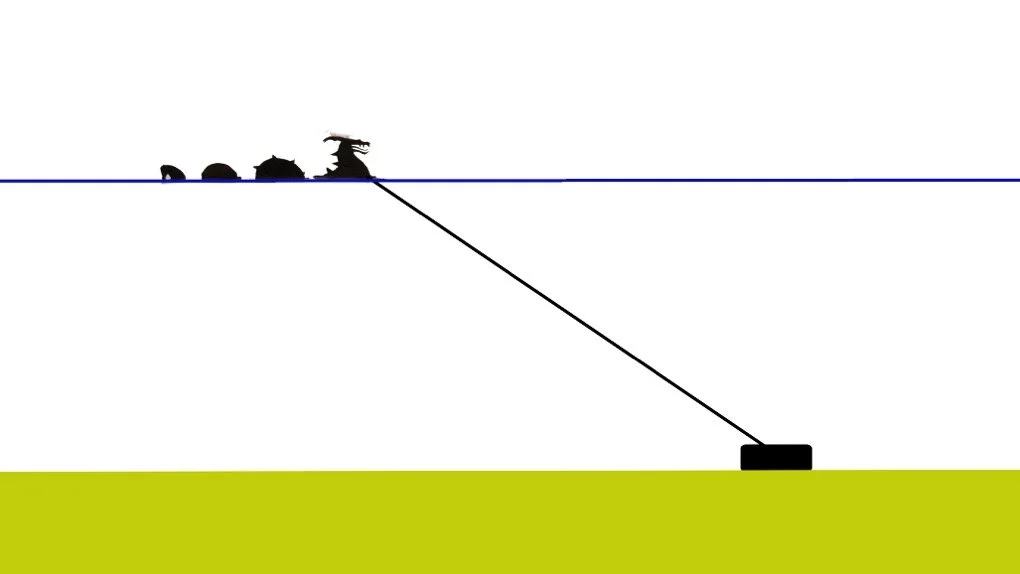 I did have the most important piece needed to place a scultpture in the middle of the creek - a rowboat. I modeled the main body after a weathervane, as a plywood silhouette that would turn into the wind. I mapped out the monster’s head after the Monty Python figurehead and cut out the outline with a skilsaw and jigsaw, probably breaking every safety rule as I worked. Each silhouette section was mounted on a triangular platform that provided bouyancy needed without any additional floatation devices.
