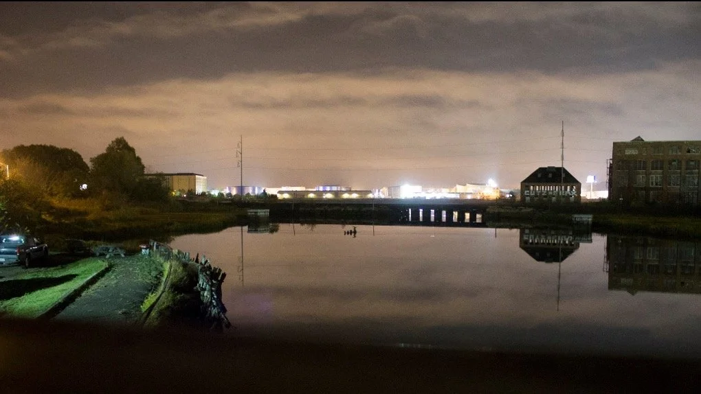 Once the Monster was built, it was time to anchor it in the creek. I kept the idea and construction mostly a secret, and decided to row it out to its spot in the middle of the night without informing anyone. I chose a spot in the middle of the creek, equidistant from Revere’s Rt 16, a large apartment complex across the water in Chelsea and the Rockport/Gloucester commuter rail tracks. The result was a viewpoint of at least 150 yards in every direction, so the image would be blurry and mysterious from all angles. A moving mass you can’t quite make out from afar is exactly how many of the monster sightings I read about as a kid unfolded.